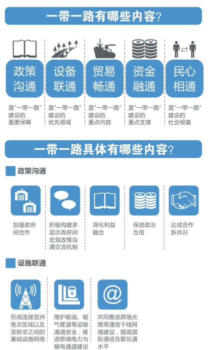 “一帶一路”是中國(guó)與絲路沿途國(guó)家分享優(yōu)質(zhì)產(chǎn)能,它是共商項(xiàng)目投資、共建基礎(chǔ)設(shè)施、共享合作成果,內(nèi)容包括道路聯(lián)通、貿(mào)易暢通、貨幣流通、政策溝通、人心相通等“五通”,比馬歇爾計(jì)劃內(nèi)涵豐富得多,肩負(fù)著三大使命: